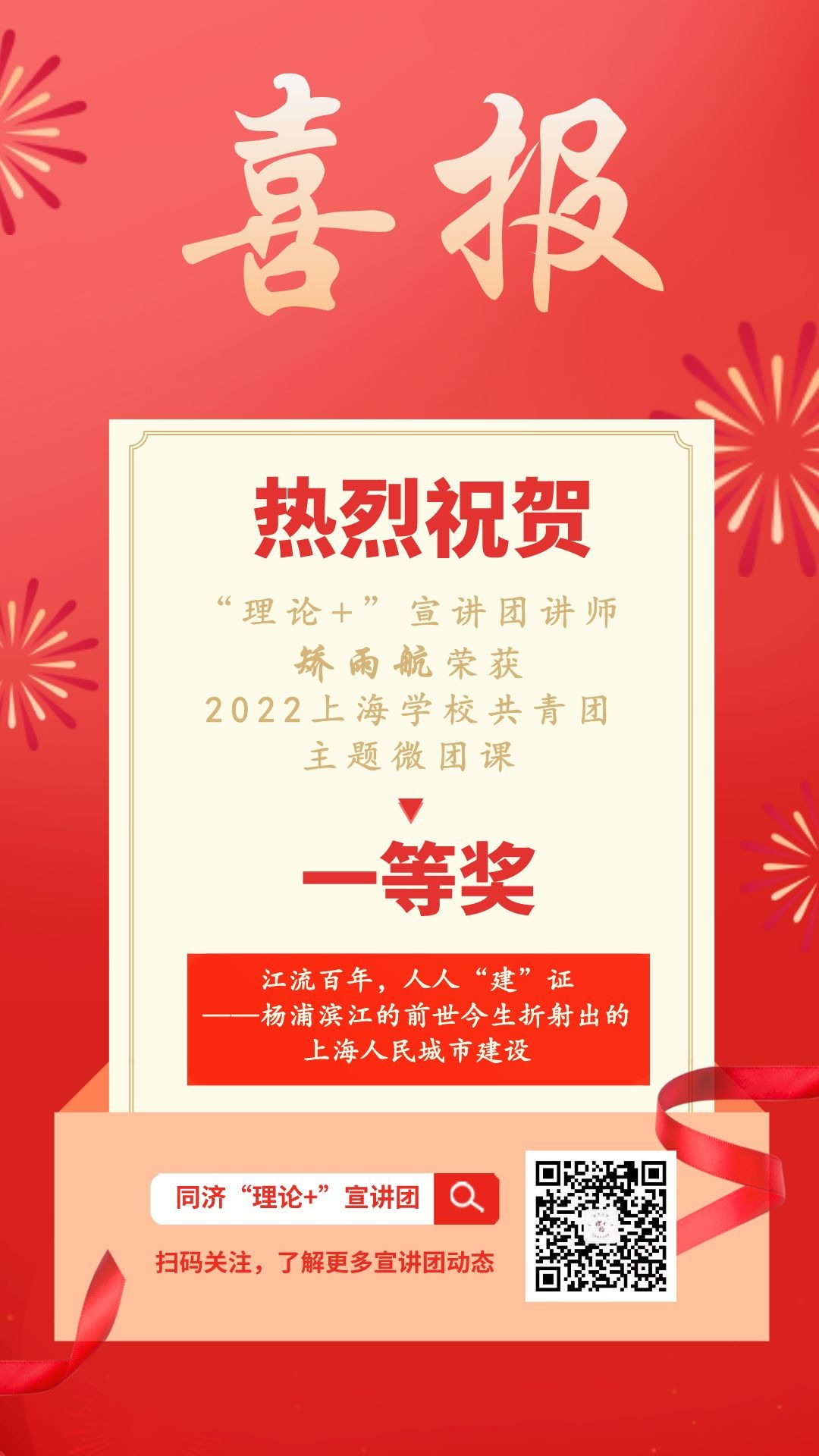 “理论+”宣讲团讲师矫雨航在上海学校共青团主题微团课大赛中...
