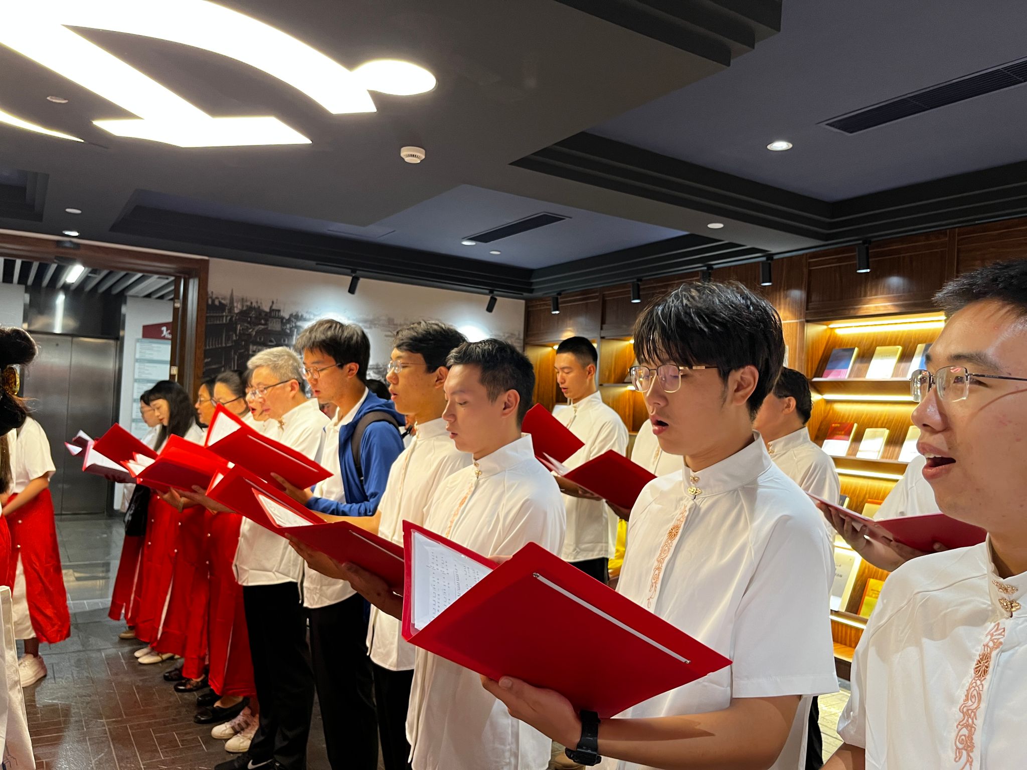 七十五载长歌奋进,赓续前行再奏华章。75年以来,中国共产党带领团结中国人民不负使命,阔步走上以中国式现代化全面推进中华民族伟大复兴的新征程。《爱我中华》饱含着同济马院人对对祖国的热爱之情。为了在舞台上呈现出最佳状态,参赛师生们在繁忙的工作学习之余,一次次全力以赴集合排练,一遍遍从音阶练习到分声部训练再到合唱,在细节的不断精心打磨中,展现了马院人的时代风采。