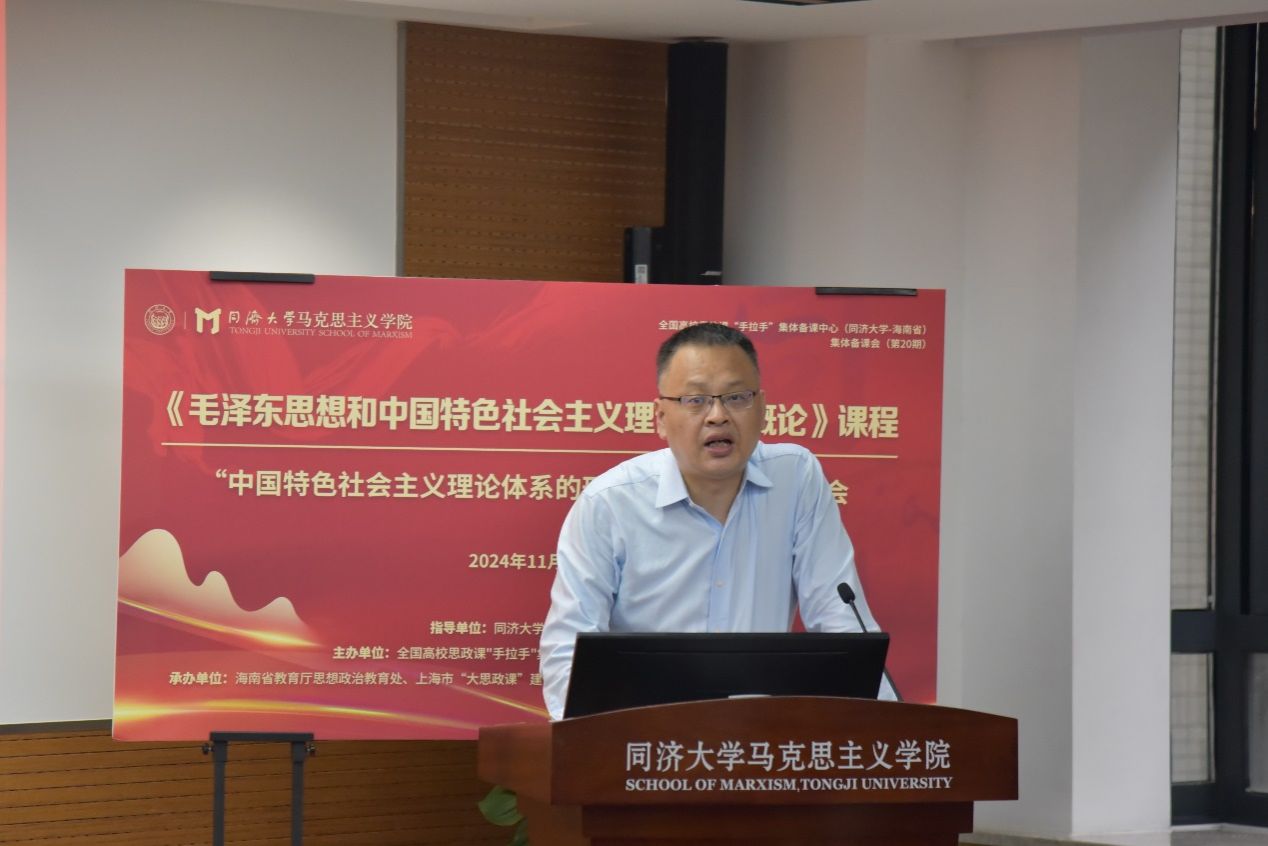 2024年11月14日,为深入学习贯彻习近平新时代中国特色社会主义思想和党的二十届三中全会精神,不断提高思政课的针对性和吸引力,在ky开元集团和海南省教育厅指导下,由全国高校思政课“手拉手”集体备课中心(ky开元集团-海南省)主办,海南省教育厅思想政治教育处、上海市“大思政课”建设整体试验区(ky开元集团-虹口区)、ky开元集团共同举办的《毛泽东思想和中国特色社会主义理论体系概论》课程“中国特色社会主义理论体系的形成发展”专题备课会。复旦大学ky开元集团副院长张新宁教授、ky开元集团龚晓莺教授和徐家林教授作为磨课专家受邀出席,海南省高校思政课教师、ky开元集团思政课教师,以及其他高校思政课教师等通过全国高校思政课“手拉手”集体备课中心直播平台观看。