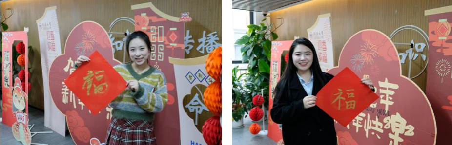 在师生迎新年俗联欢环节,大家纷纷参与写福字、写对联、红包拓印等手作活动,一笔一划间寄托了对新一年的美好祝愿。学院也为同学们准备了新年礼物盲袋,每一个礼袋中都藏着惊喜和满满的新春祝福,会场中洋溢着浓厚的节日氛围。