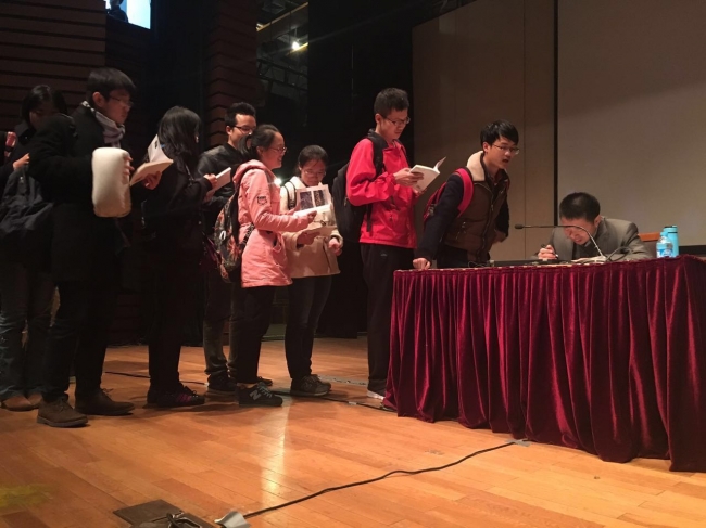 最后,蒋献生向在座学生赠送自己的著作《放歌雪域—一位援藏干部的乡土情怀》,大批同学踊跃上台排队领书并与蒋副县长交流。本次讲座,蒋副县长在新农村建设的理论层面进行了一些有益的探究归纳,在实践层面以自身的援藏工作和基层三农经验为基础,向在场的师生形象地描绘了新农村建设的美丽画卷,他声情并茂地勉励广大同济学子要心怀对三农的情感,积极投身于新农村建设当中,同时也要以“爱公信俭”为个人基本准则,尽己所能地做一些必要的善事,这不仅感染和鼓舞了在场师生,也使我们获益良多、受益匪浅。