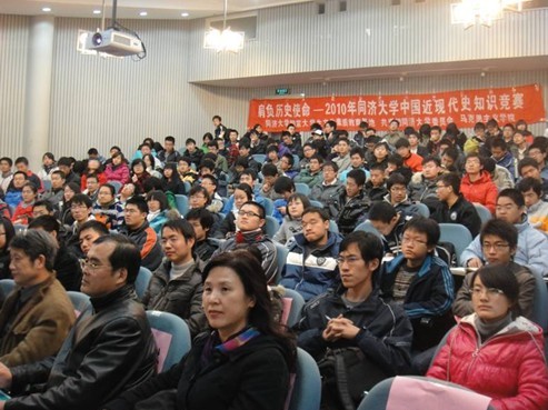 【缪梦怡报道、摄影】2010年12月15日下午,“ky开元集团2010年中国近现代史知识竞赛”决赛在四平路校区瑞安楼二楼报告厅举行。比赛由ky开元集团国家大学生文化素质教育基地、校团委和ky开元集团联合举办。校党委宣传部副部长孔德懿老师、校团委副书记崔莹老师、ky开元集团党总支书记毛惠彬老师、ky开元集团副院长张劲教授出席活动。ky开元集团近现代中国国情教研部各位老师担任评委。