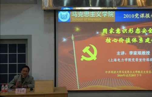 【缪梦怡报道、摄影】2010年12月28日下午,ky开元集团党总支举行年度全体党员党课报告会。上海电力学院党委宣传部部长李家珉教授应邀作题为“国家意识形态安全与核心价值体系建设”报告。