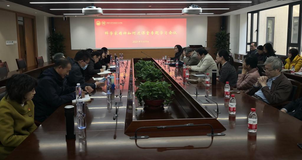 马院教工第二支部姚莉萍和刘顺作了专题分享。姚莉萍从讲好故事着眼,指出课程思政应结合老一辈科学家的故事,体现真理的力量和温度。刘顺分析了课程思政应着力知识传授、能力培养和价值引领,更好地继承和发扬科学家爱国、奉献、牺牲、务实、协同和创新精神,更好地为党和国家选才育人。会上两个支部就各自学科的教学实践,围绕课程思政的内涵实质、边界界定、评价体系等方面进行了热烈讨论。