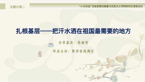 张竣哲同学首先从择业观切入,强调要明白自己想要的是什么,自己在哪里能够发挥出更大的价值,不要局限于工资的高低,城市的大小,要多一些人生理想和家国情怀,这也正是他选择成为一名选调生的原因。其次,为我们讲解了中央和地方选调生的区别,并根据自己的准备经历,详细讲解了上海市和陕西省选调岗位和选调过程的区别与联系。在笔试方面,对不同科目提供了针对性的建议;在面试上,一定要多说多练,保证自己的表达是逻辑严密且不能超时,要将自己置身于未来的岗位当中,不能空谈。最后,他还强调了简历的制作是非常关键且重要的,但是简历不是简单的用笔写出来的,而是用真实的经历去丰富出来的。为此,大家可以积极的去寻求挂职锻炼和实习等社会实践的机会,不仅可以扩大眼界、提高综合素养,也能在就业中提高自己的竞争力。