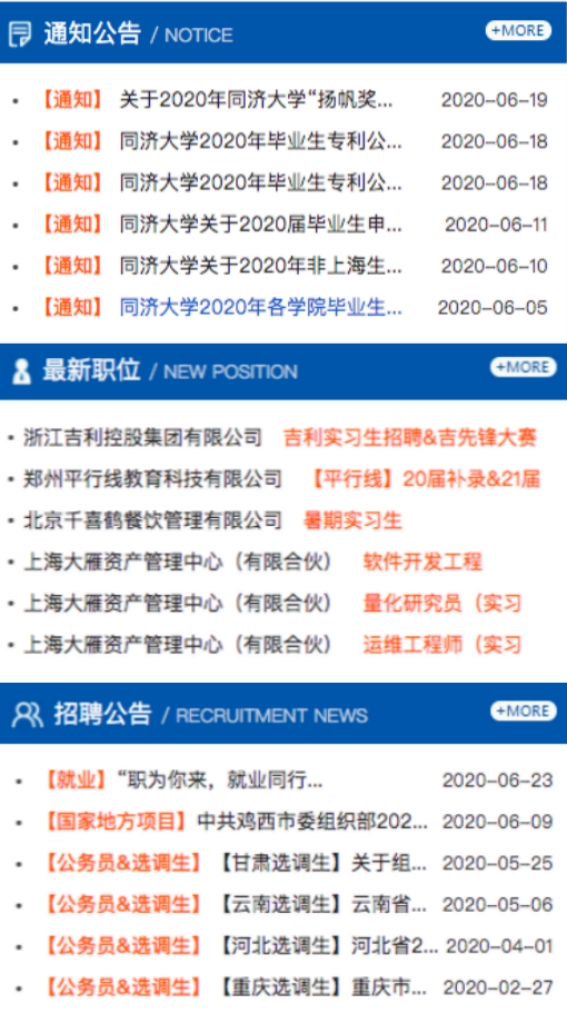 将近一年半的工作了解了更多的求职渠道与就业政策,更早的与各类求职者和招聘单位打交道,更深入了解了学校就业趋势与毕业生就业走向,获得了更多元的就业信息。其中主要参与了数十场同济校内宣讲会的跟场,包括校各类外企事业单位及多个省市政府机关;参与了校内大型综合招聘会的现场协助组织;做好与入校宣讲单位的对内协调、对外联络、后勤保障、会务组织等相关工作。
