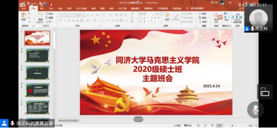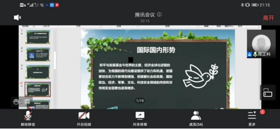 杨一凡同学通过视频分享,介绍了关于国家安全观的基本理论知识,认为青年人作为维护国家安全的重要力量,应主动学习国家安全相关法律法规,从自身做起切实履行维护国家安全的责任与义务。接下来,同学们一道收看了专题片《护航之道——总体国家安全观纵横》,围绕着这节团课,结合国家安全教育日主题,硕士班成员展开了热烈的讨论,线上分享了对国家安全战略的认识。