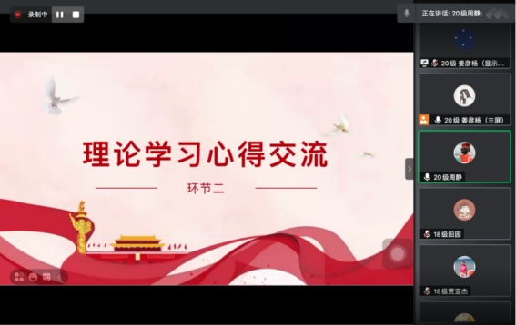 在主题学习交流会的第一个环节,2020级博士团支书姜彦杨主讲了“全民国家安全教育日”主题微团课,向大家简要介绍了“总体国家安全观”的相关内容。在主题学习交流会的第二个环节,团员青年们畅所欲言,积极分享学习感悟和体会。