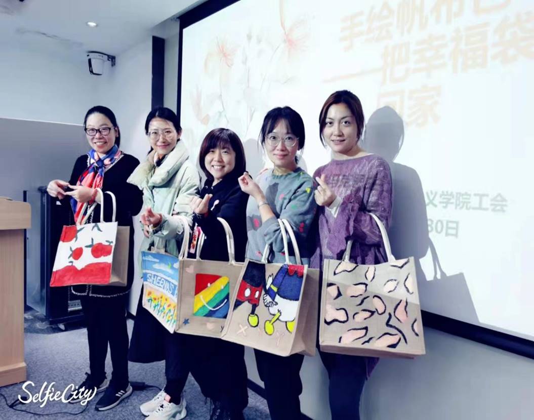 手绘帆布包打破了印刷产品的工业性,以差异化的表现形式带来了独特的审美体验,深受在场女教师的喜爱。一幅幅萌趣优美的画作展现了马院女教师们的别样个性,在欢声笑语中凝聚了人心。制作完成的手绘帆布包既可日常使用,也可作为纪念品收藏,一份份亲手绘制的彩色布包,使大家在工作之余放松了身心,感受到了创造、劳动、交往所带来深切幸福。