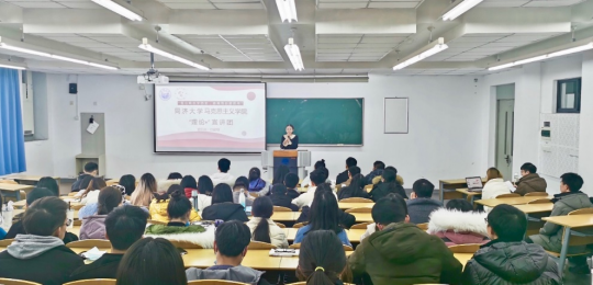 宣讲员宋淑苇以照片引入,鲜活生动,引导同学们很快进入到黄浦码头的情境之中,同时以历史的脉络为线索,通过黄浦码头与留法勤工俭学的关系,深刻阐释了黄浦码头在建党历史中的重要地位,以及改革开放以来的功能转型,也展示出了上海作为交通要道的历史根源。宋淑苇通过设问的形式,来引导同学们探寻背后的真相与意义,引人入胜。