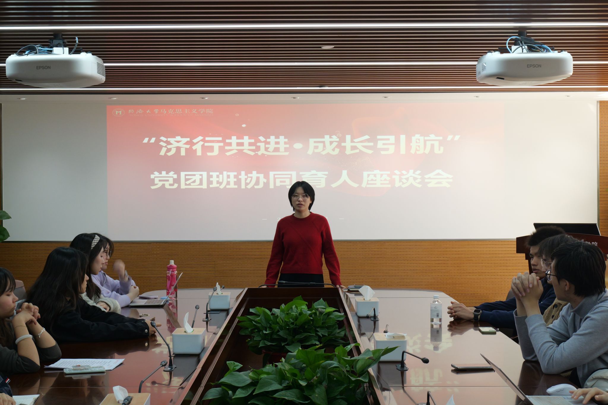 座谈会上首先由本科生党支部正式党员进行自我介绍,随后本科生党支部书记陈春霞老师介绍了本学期支部“对标争先”建设计划的主要内容及推进安排,最后各位党员及团员围绕党团班协同育人的思路、面临的挑战以及未来的发展方向等话题开展分组座谈。
