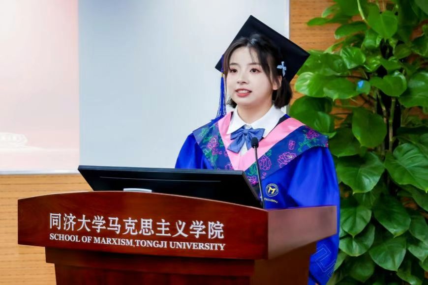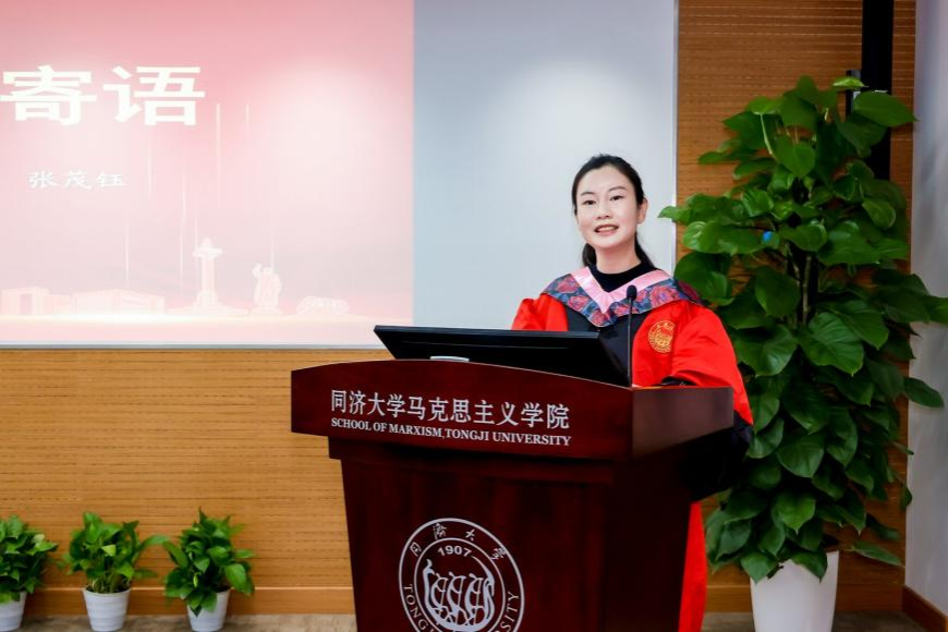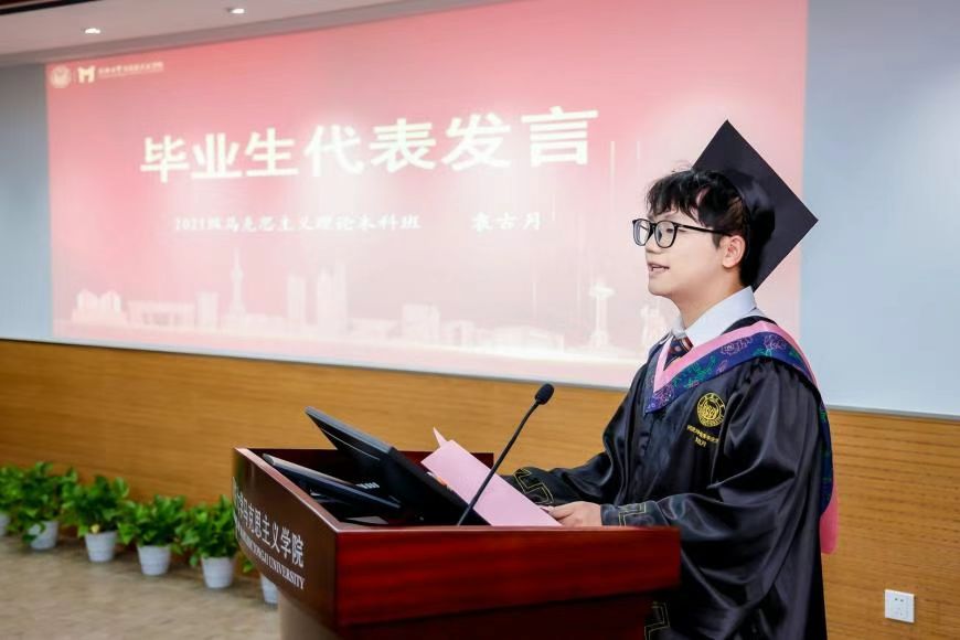 2021级马克思主义理论本科班张茂钰老师作为班主任代表发言,她表示作为班主任亲眼见证并参与了同学们的成长,感受到了同学们从青涩到成熟的蜕变过程。她对毕业生提出三点建议:一是拥抱未知、保持热爱,在复杂多样的世界中找到自己的节奏和热爱;二是励志修身,坚定理想,做好应对挫折的准备,用平实态度追梦;三是终身学习,追求卓越,不断提升能力以应对变化。最后祝愿同学们以梦为马,驰向未来。